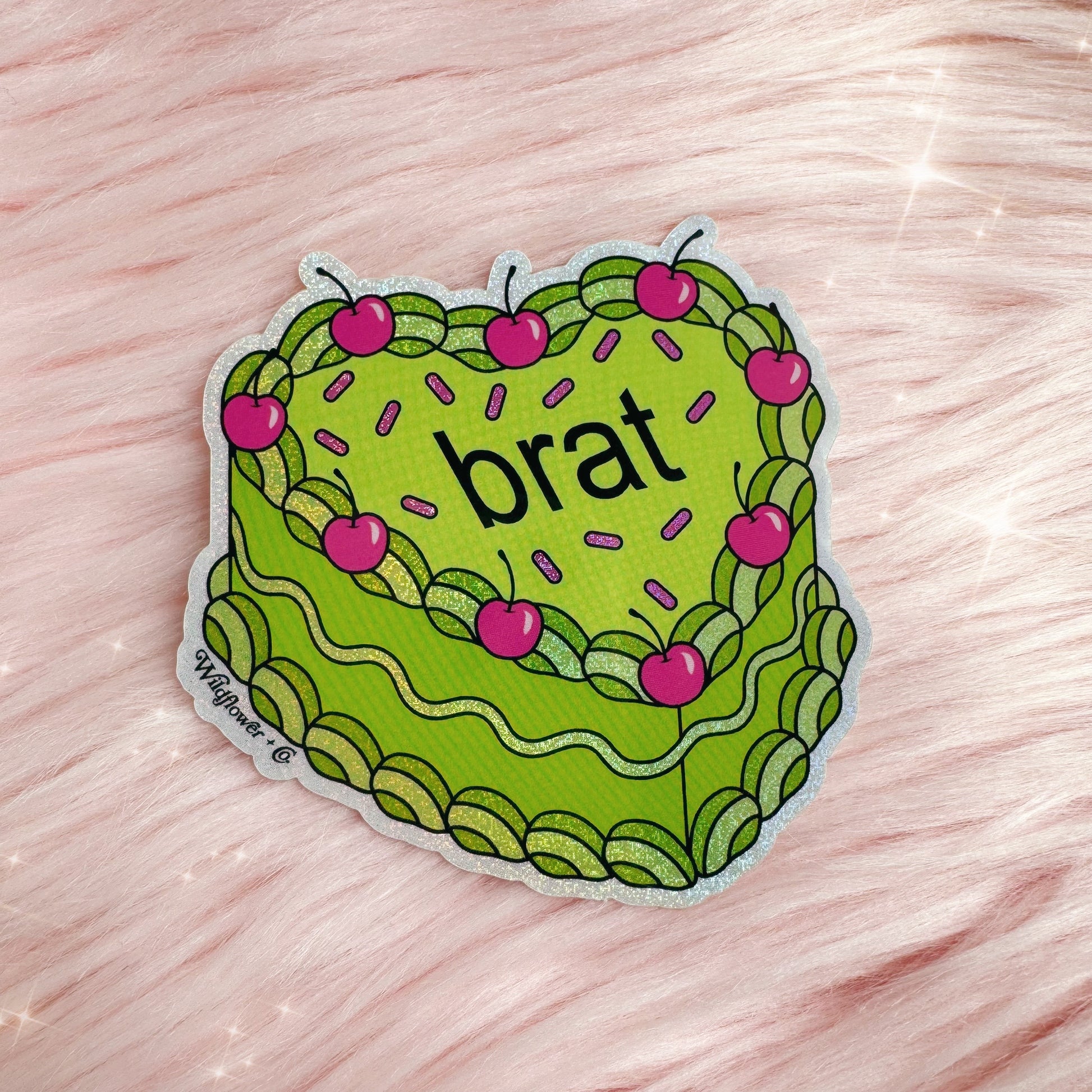 Grab a slice from our Brat heart shaped cake glitter sticker!