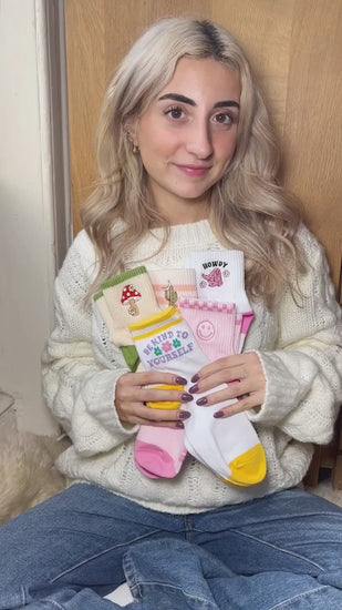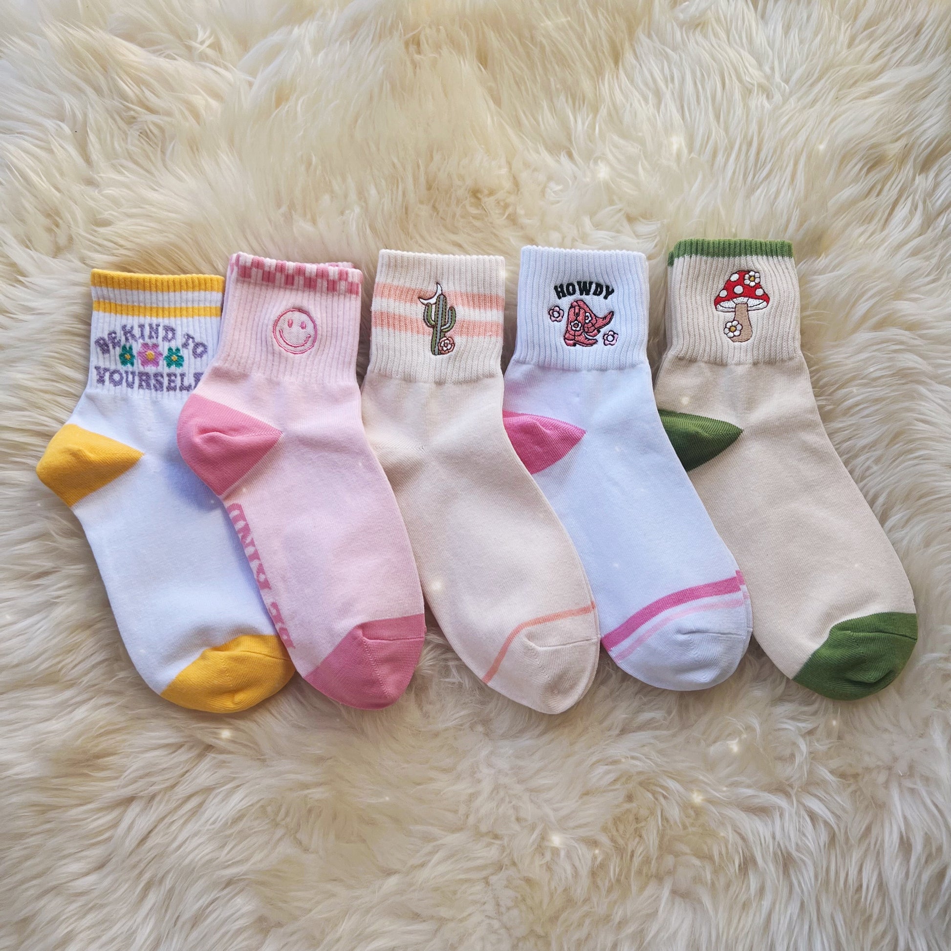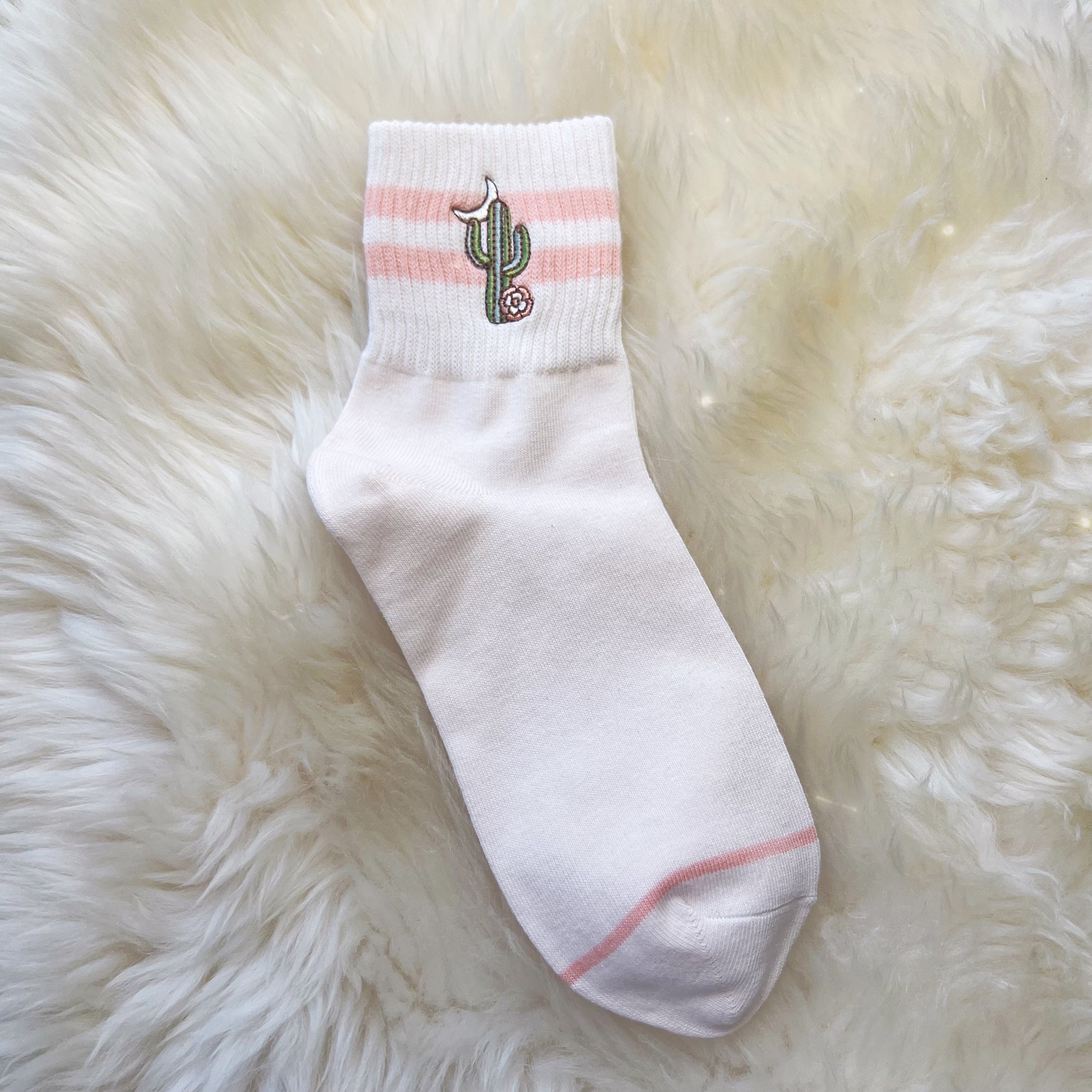 Cute & cozy socks with vibey cactus & moon embroidery!