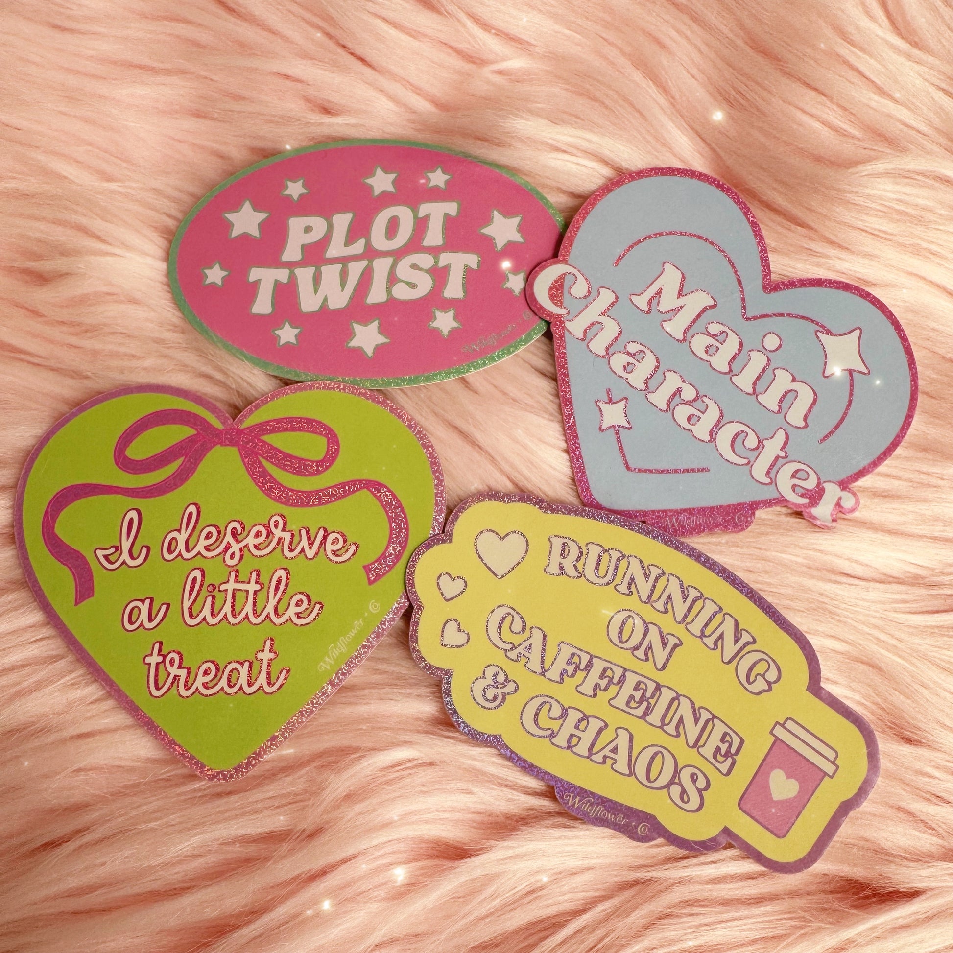 Cute Stickers - Plot Twist - Main Character - I Deserve a Little Treat - Running on Caffeine & Chaos
