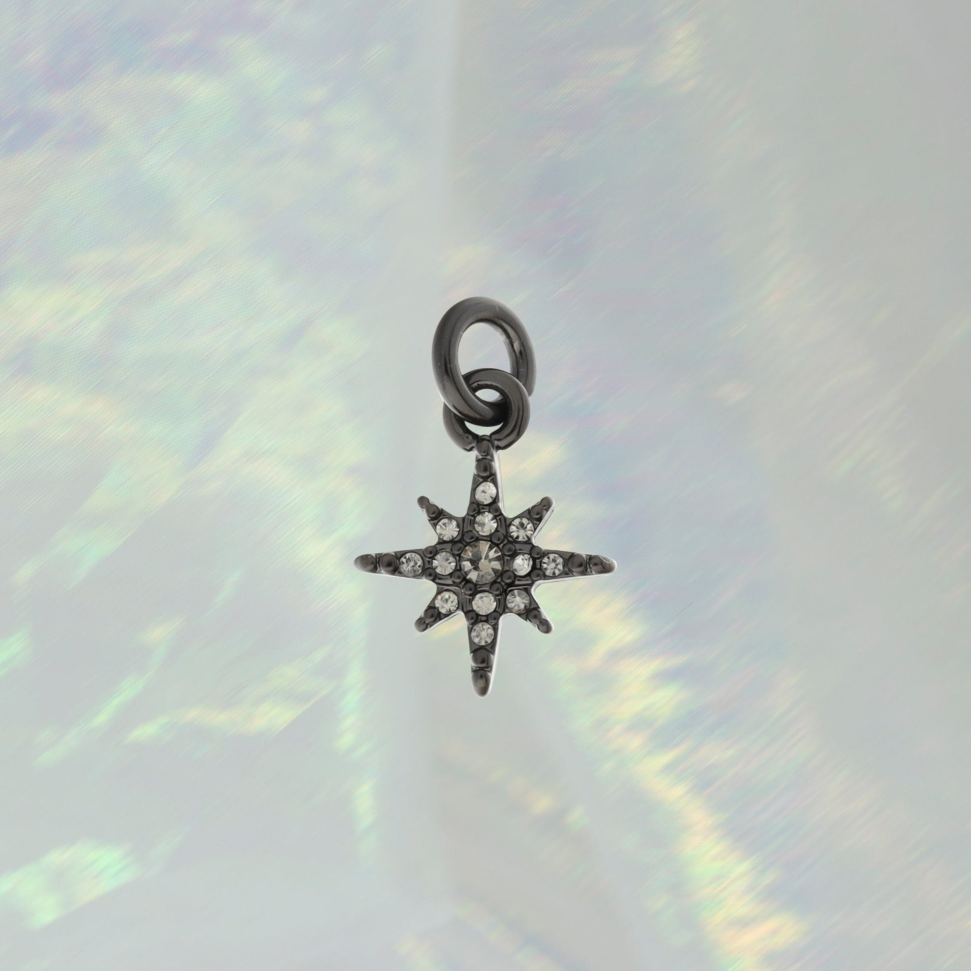 Dainty Pave North Star Charm - Pendant - Tiny, Delicate - "Black Diamond" Crystals & Hematite, Wildflower + Co.