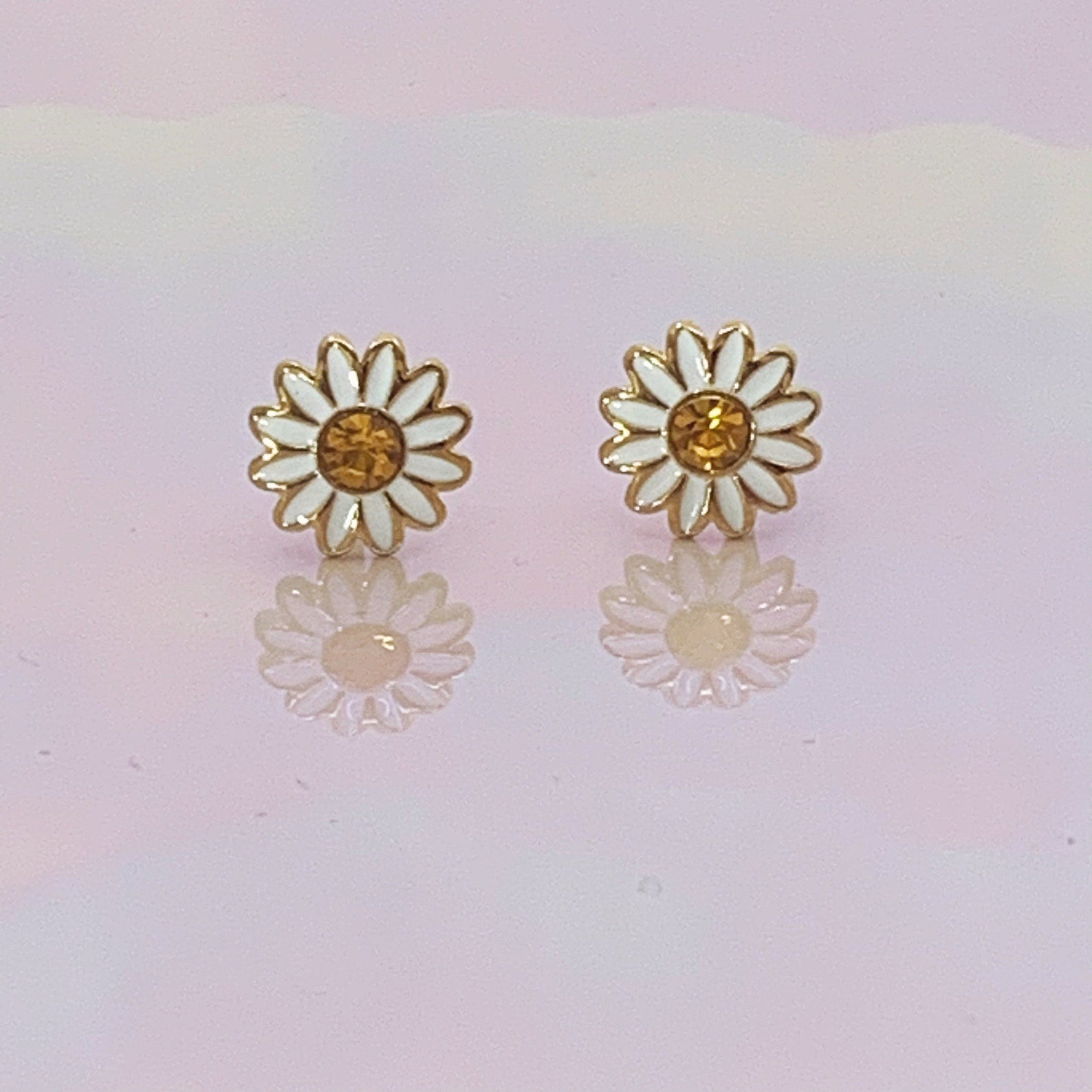 Daisy stud earrings are so cute for the flower child! Hard enamel in bright white & yellow accented with polished gold. Wildflower + Co.