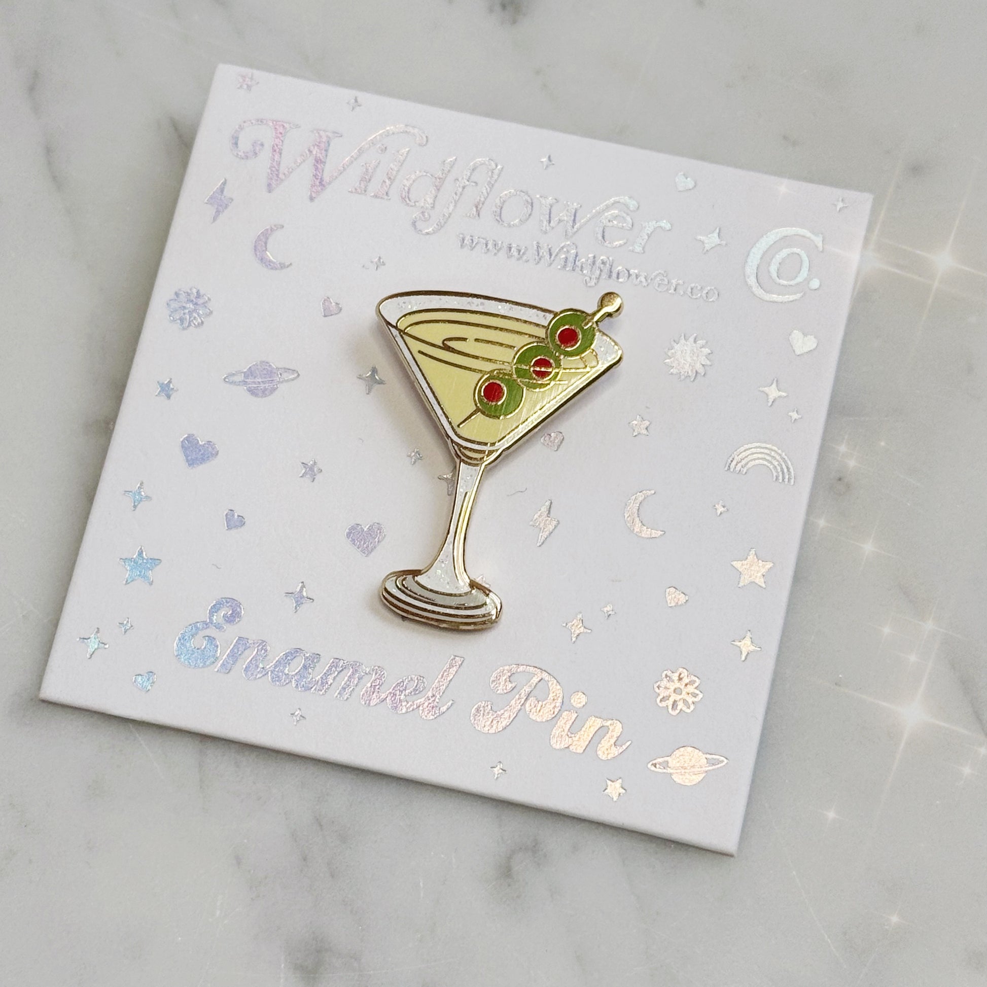 Dirty Martini Pin - It's always tini time w/ this lil' pin! Subtle sparkle in the white of the glass...so cute!
