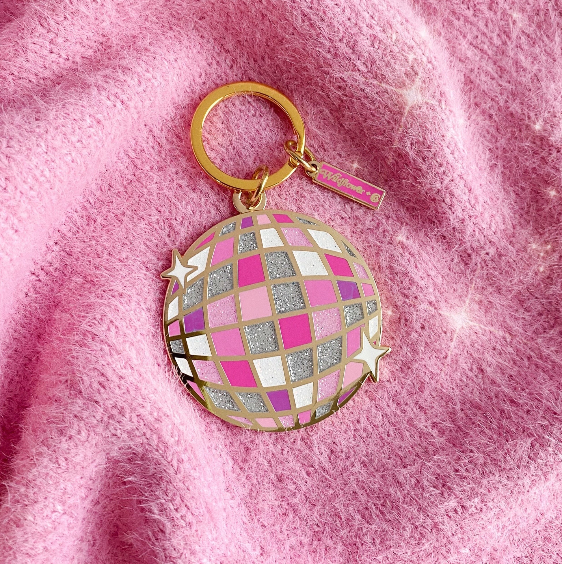 Bring the party to your keys with our super fun, pink disco ball enamel keychain!
