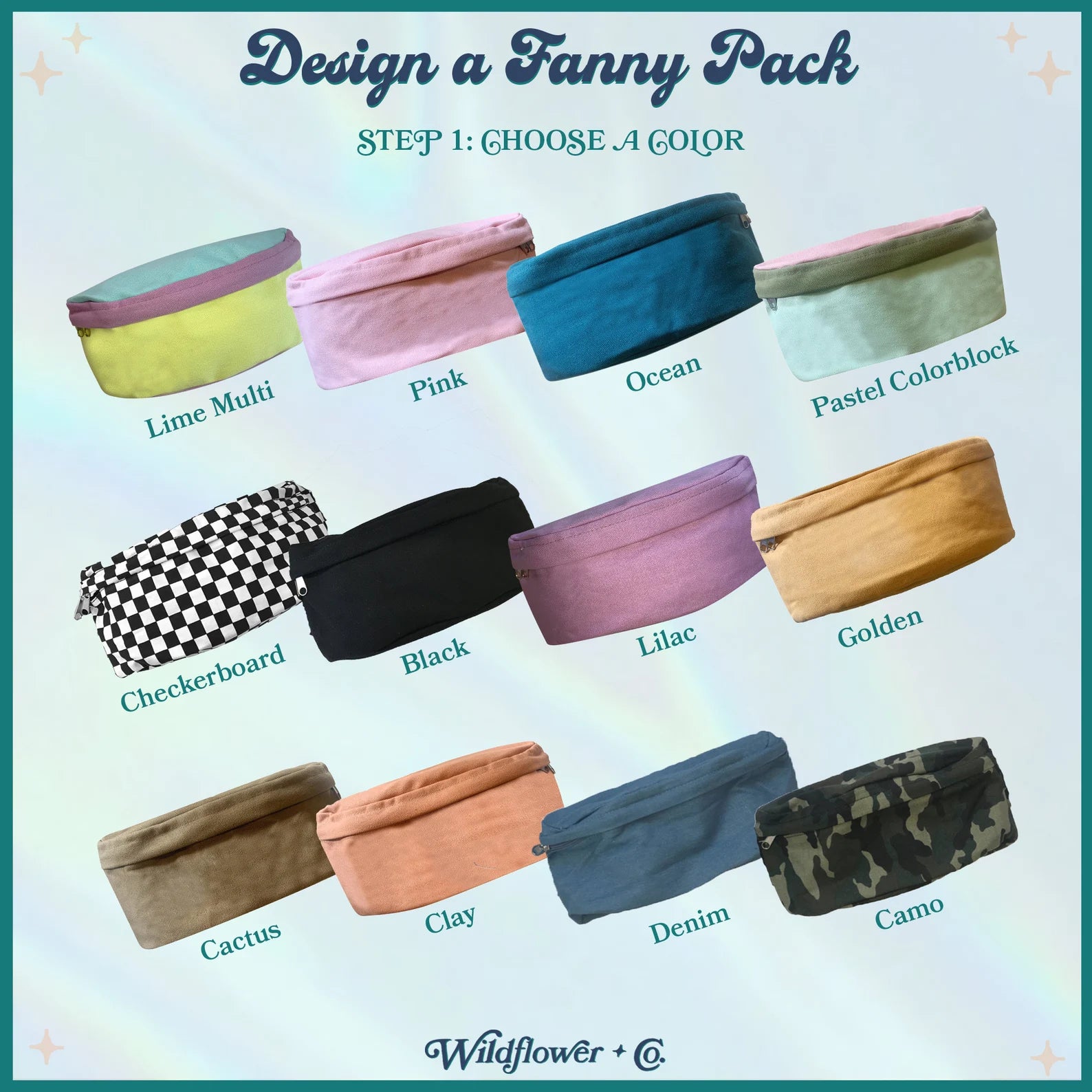 Design your own fanny pack & choose your fave fanny pack color & patches! 1st patch is included in the base cost & any additional patches are optional!