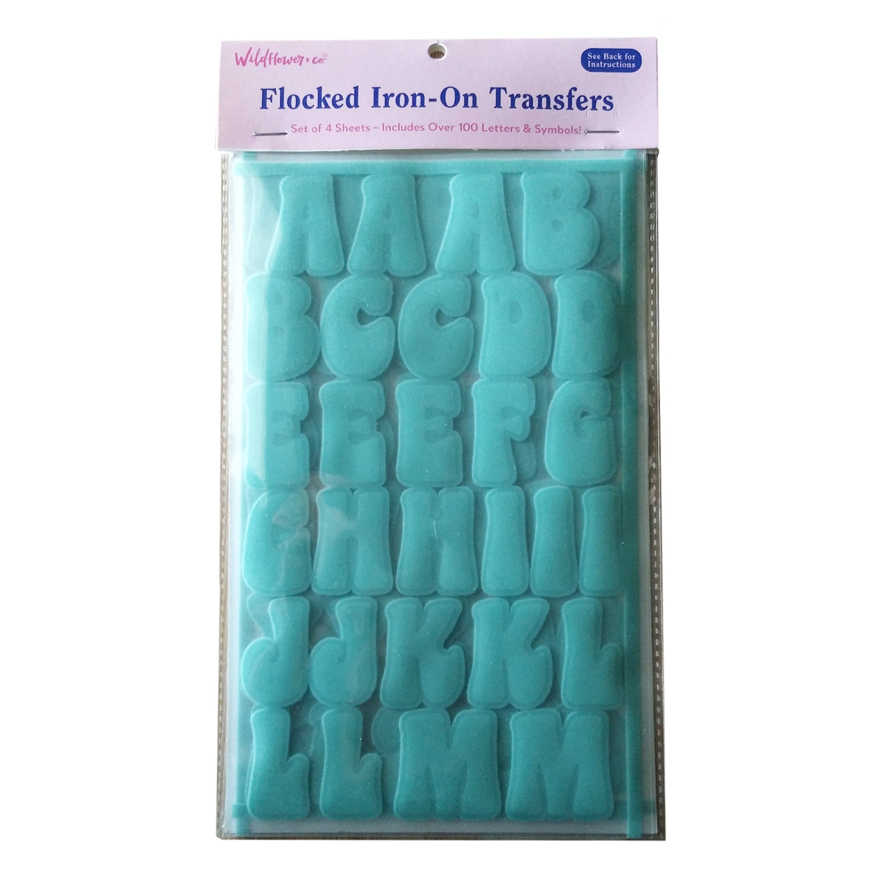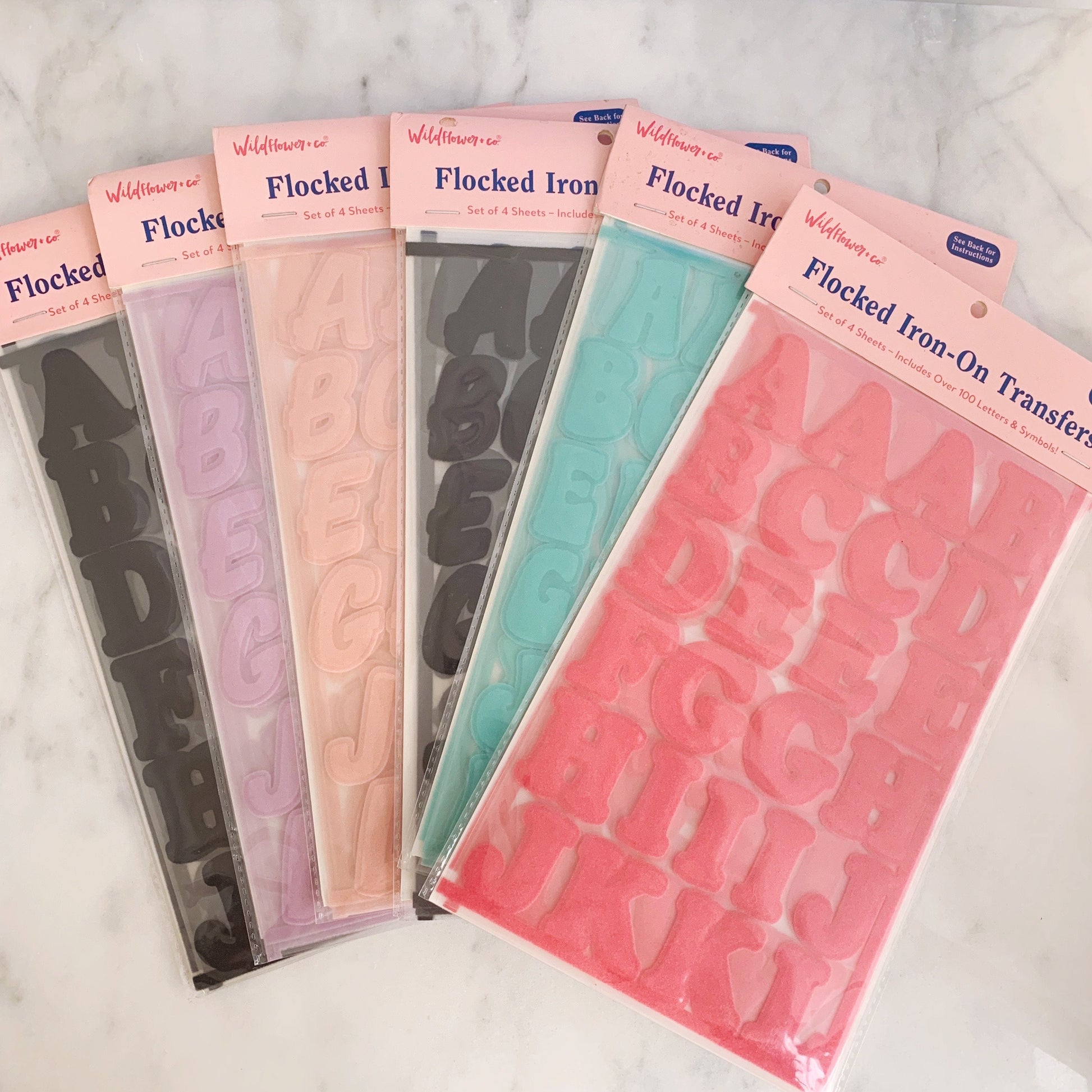 Our flocked transfers / iron on letters are perfecting for making personalized t shirts! Fun, fuzzy iron on letters let you literally spell out anything you can think of! Turn your basic clothes into personalized billboards – sassy, funny, political, whatever! Each pack contains over 100 transfers, including the full alphabet, numbers & our fave icons!!!