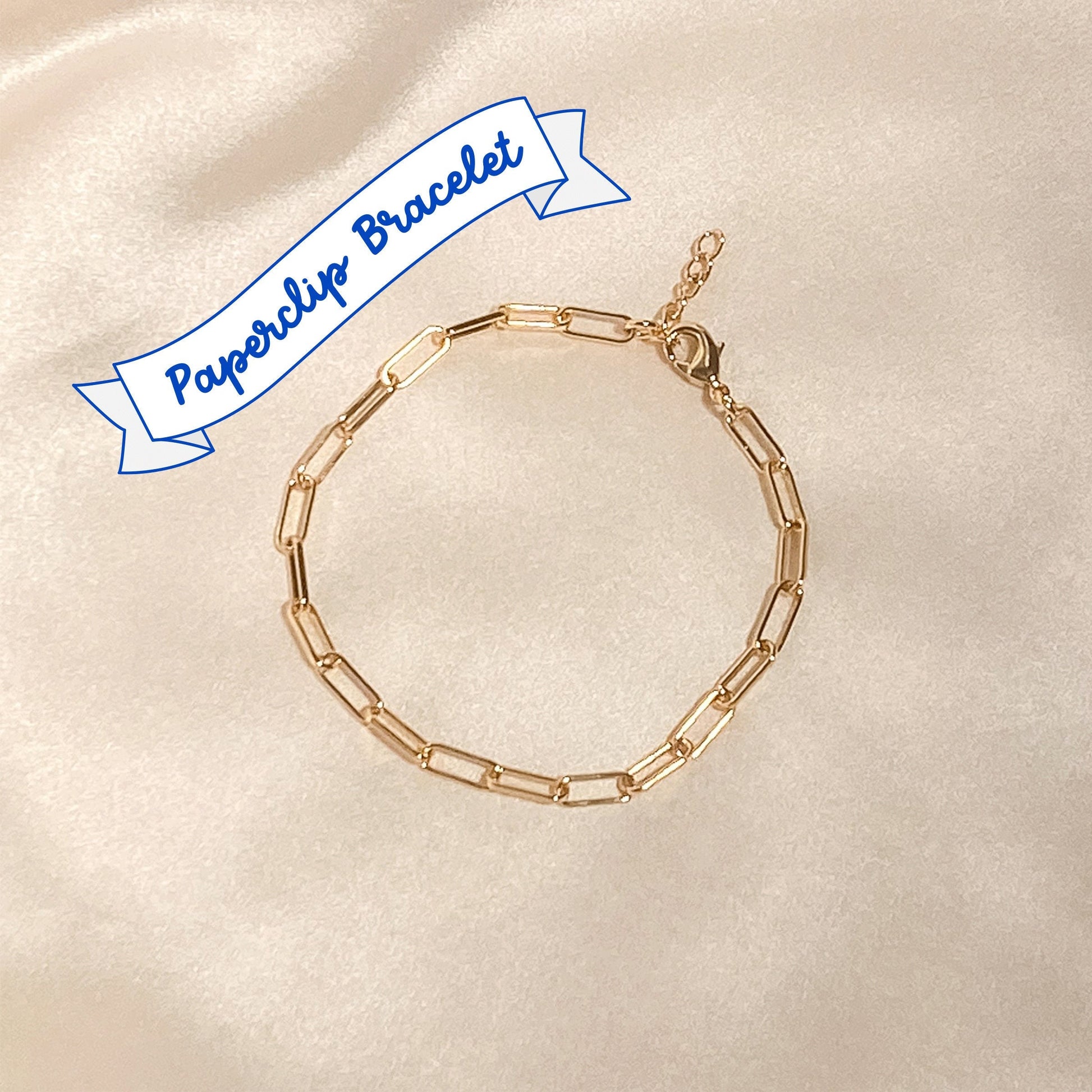 Our Paperclip Chain Bracelet is part of Wildflower + Co.'s collection of Base Charm Necklaces & Bracelets, designed for use with our charms. This bracelet features a modern, paperclip chain in a polished gold finish. It measures 8" long plus an extra 3/4" extender. We recommend this for 1 to 8 charms!