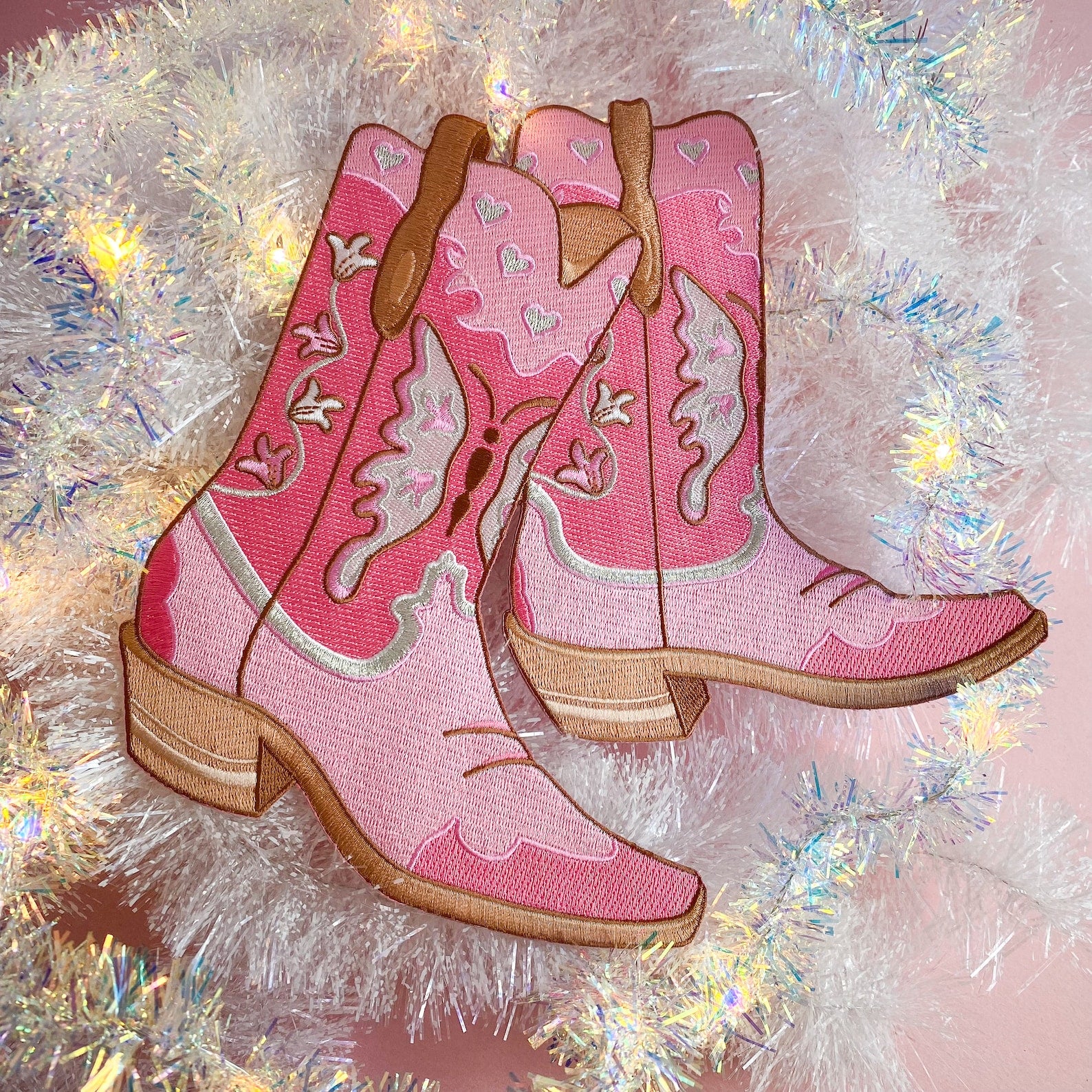 Pink Cowgirl Boot & Howdy XL Back Patches - perfect for Space Cowgirl - Disco Cowgirl themes & Bachelorette Parties! Sized to look great on the back of jackets!