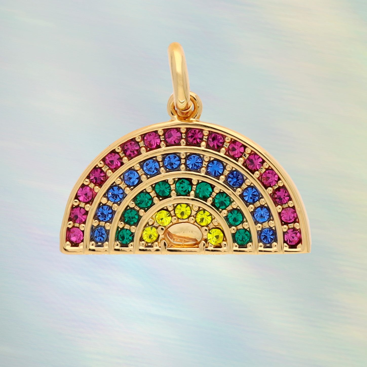 Rainbow Charm or Pendant, Gold & Bright Pave Crystals