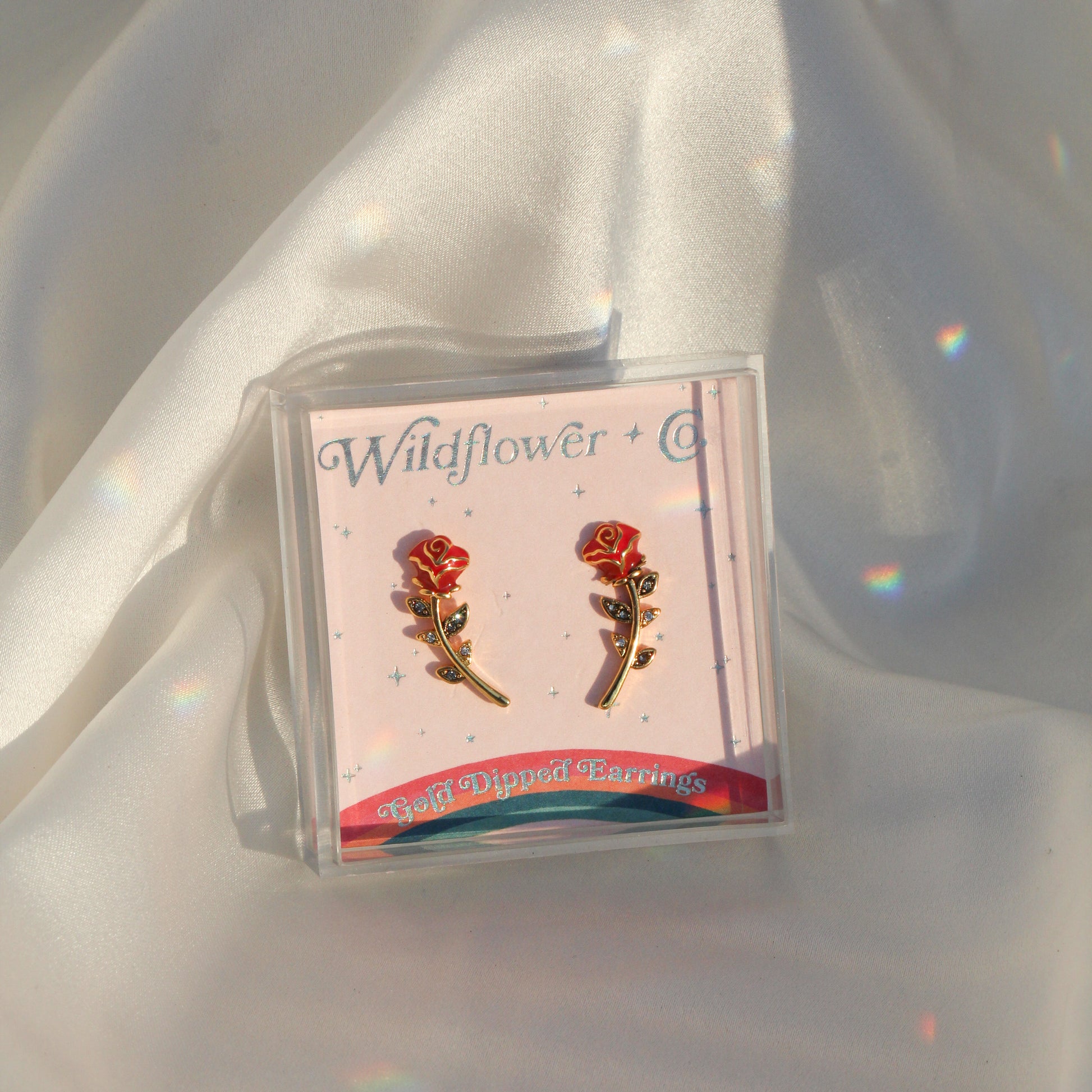 Sweet, delicate long stemmed rose earrings! Wear 2 different ways - as climbers or as drops. Perfect for the coquette or soft girl aesthetic ♥ Delicately detailed with red enamel & subtle pave crystals.