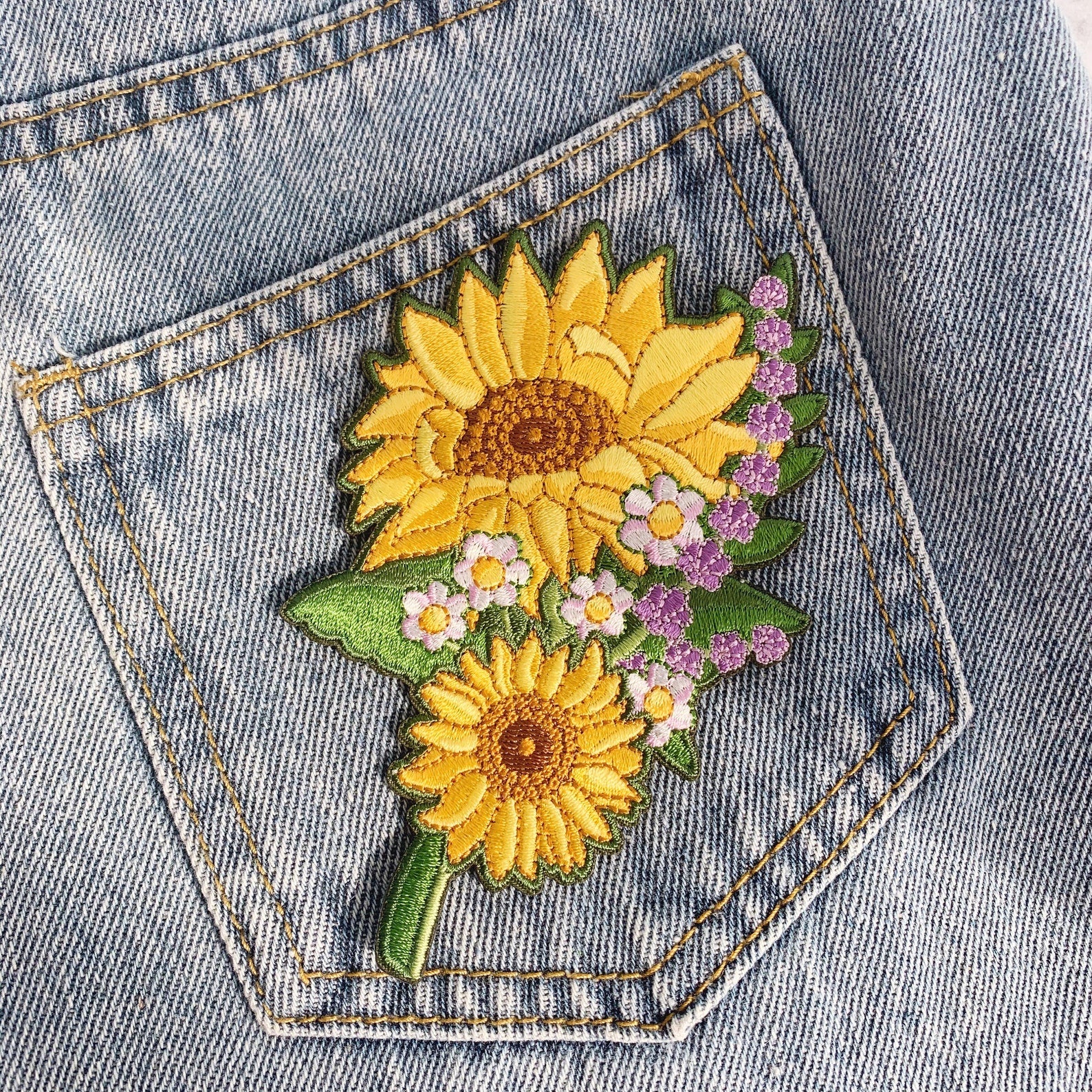 Sunflower Patch - Iron On Embroidered Patches - Mirror Image Set or Individually Sold - VSCO - Boho - Daisy Lavender Flower Floral - Wildflower + Co.