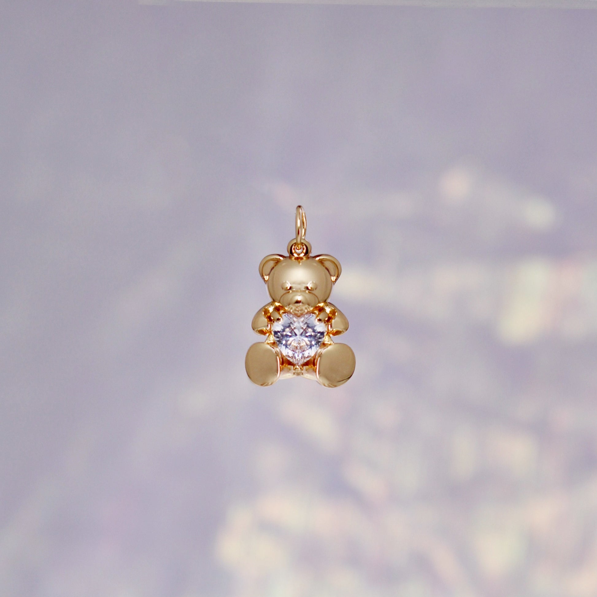 Dreamy Teddy Bear Charm takes us on a nostalgic trip back to our childhood! Beautifully detailed with a sparkling crystal heart, & gold. Cuddle up! Wildflower + Co. Jewelry