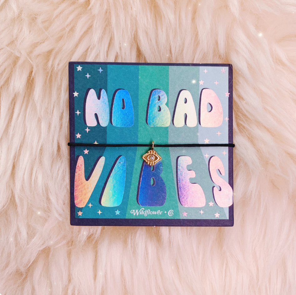 ♥ Evil Eye, Gold Dipped or Sterling Silver - "No Bad Vibes" card