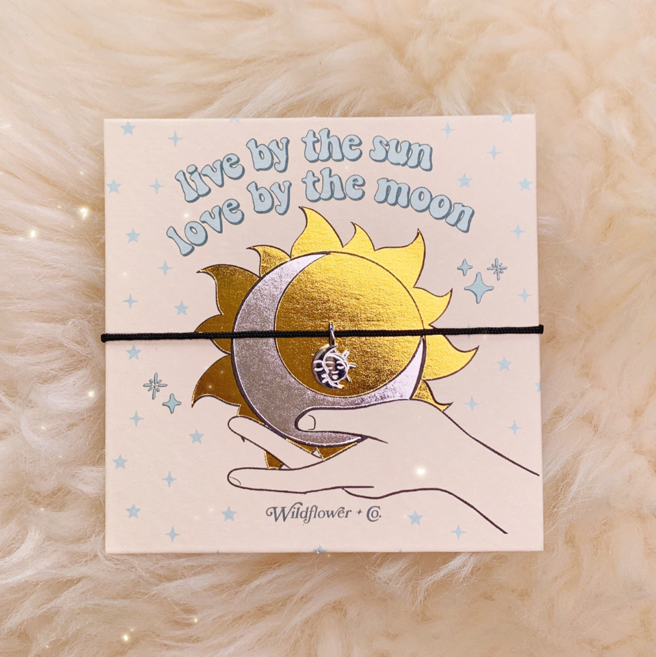 ♥ Sun & Moon, Gold Dipped or Sterling Silver - "Live by the Sun, Love by the Moon" Card